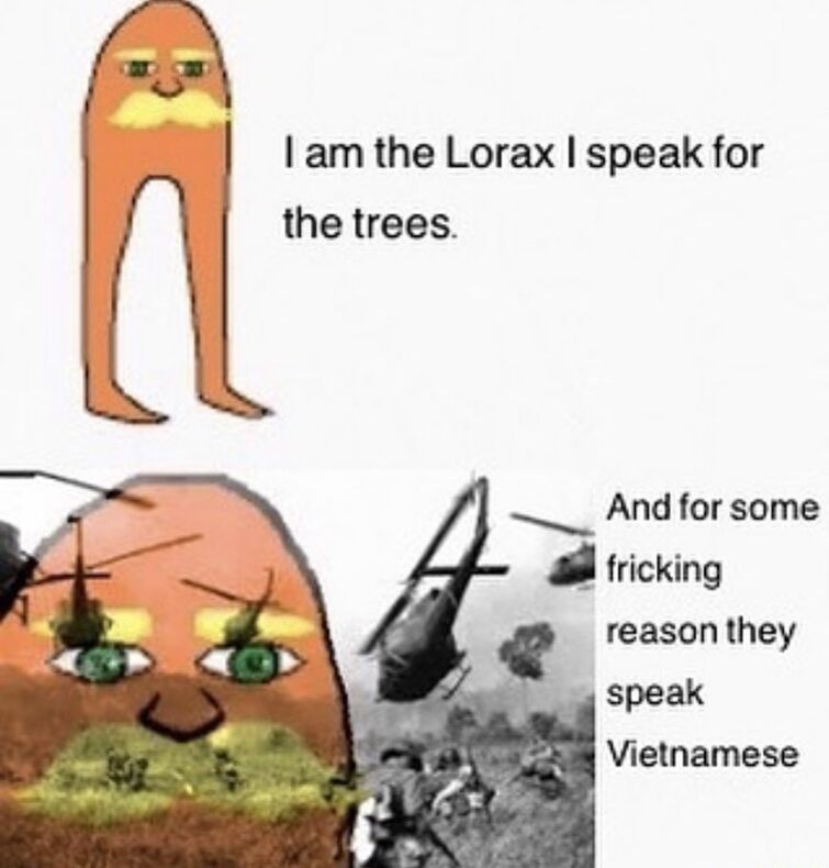 I Am The Lorax I Speak For The Trees But For Some Fricking Reason There Speaking Vietnamese The Terminator Make A Meme