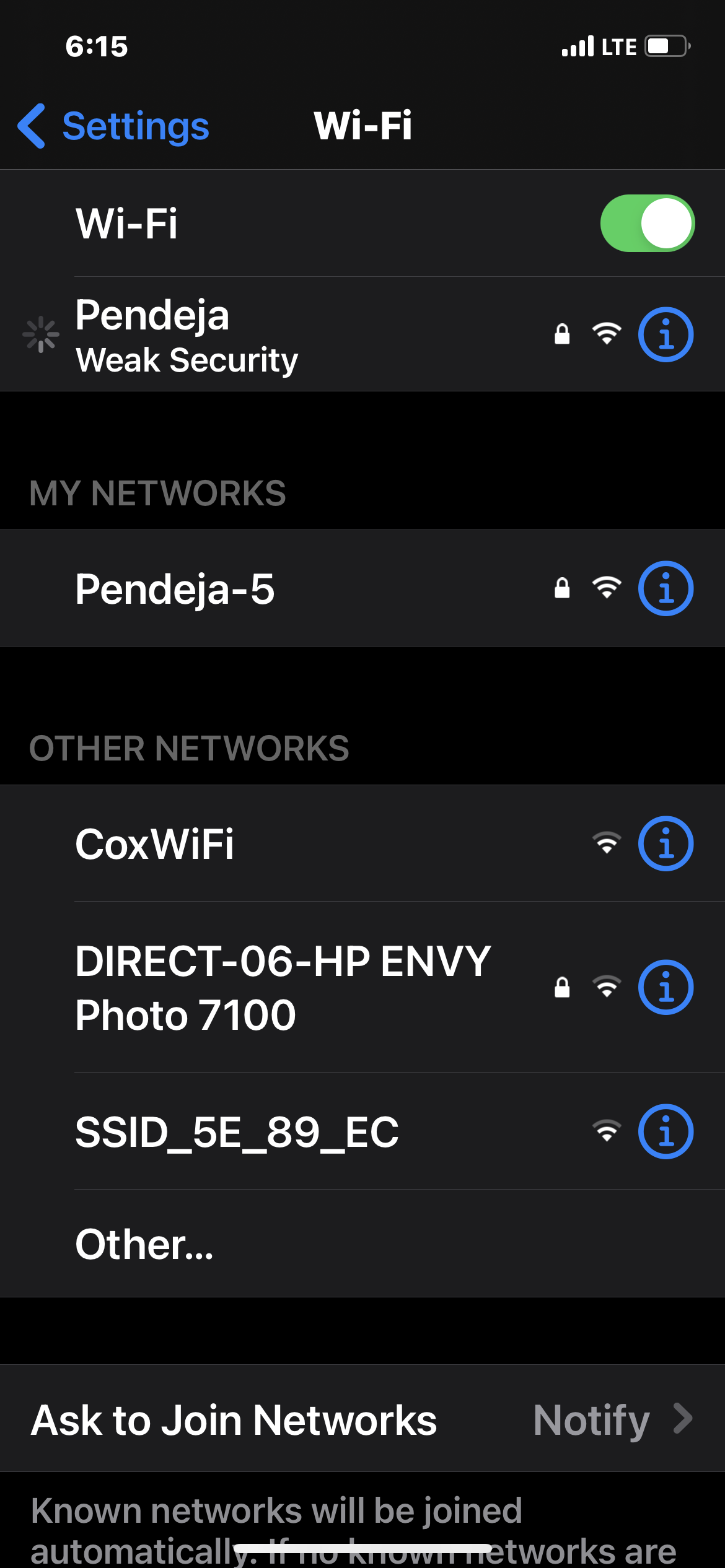 Security mode bottom corner Enter. You will see the Weak Security notice below the Wi-Fi now. If youre looking at your Wi-Fi connections in Settings on your iPhone and see an entry labeled Weak Security it means that Apple is warning you that the router youre.
